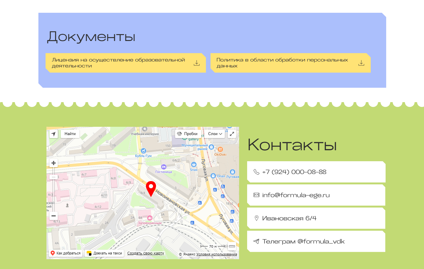 – Проработали структуру: главная, программы, акции, новости, документы, контакты, FAQ.
